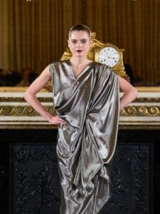 Remaining faithful to his creative language, Ayissi explores draping, pleating, and knotting techniques, which here become expressions of freedom and fluidity. References intersect and engage in dialogue: Ancient Greece, African chieftaincies, and the great figures of haute couture, notably Madeleine Vionnet and Madame Grès.