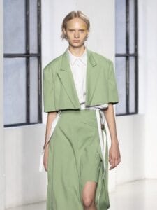 This modern approach to tailoring emphasizes a smart cut and maintains control over the shape from a pattern-making perspective.